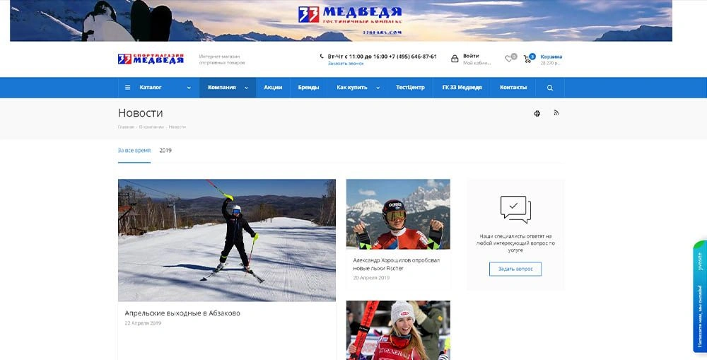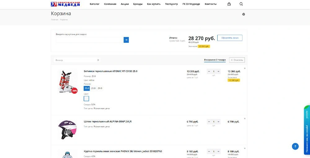 • Интернет-магазин горнолыжной экипировки